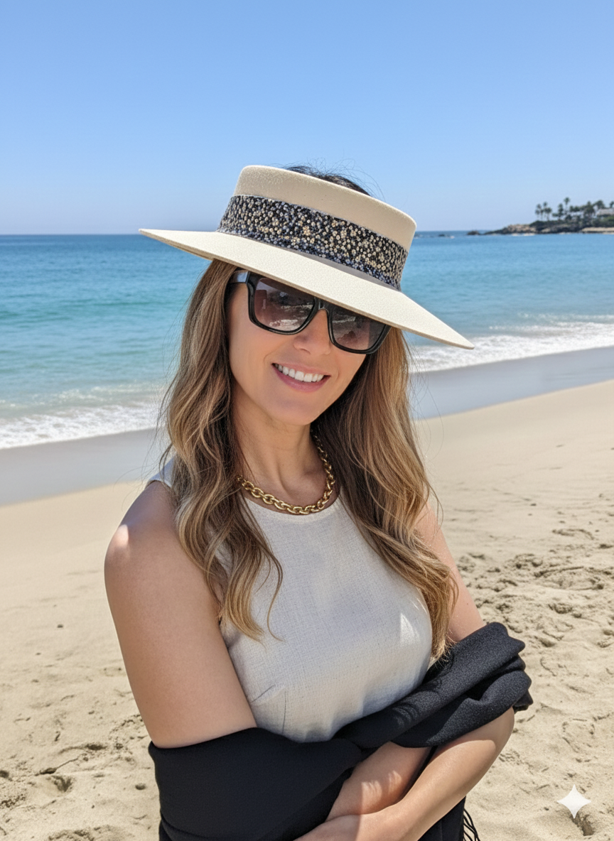 Beige "LadyEVA" Visor Hat with Green Monet Inspired Band