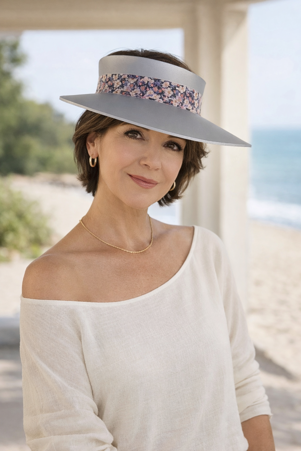 Taupe Brown "LadyEVA" Visor Hat with Botanical Themed Band