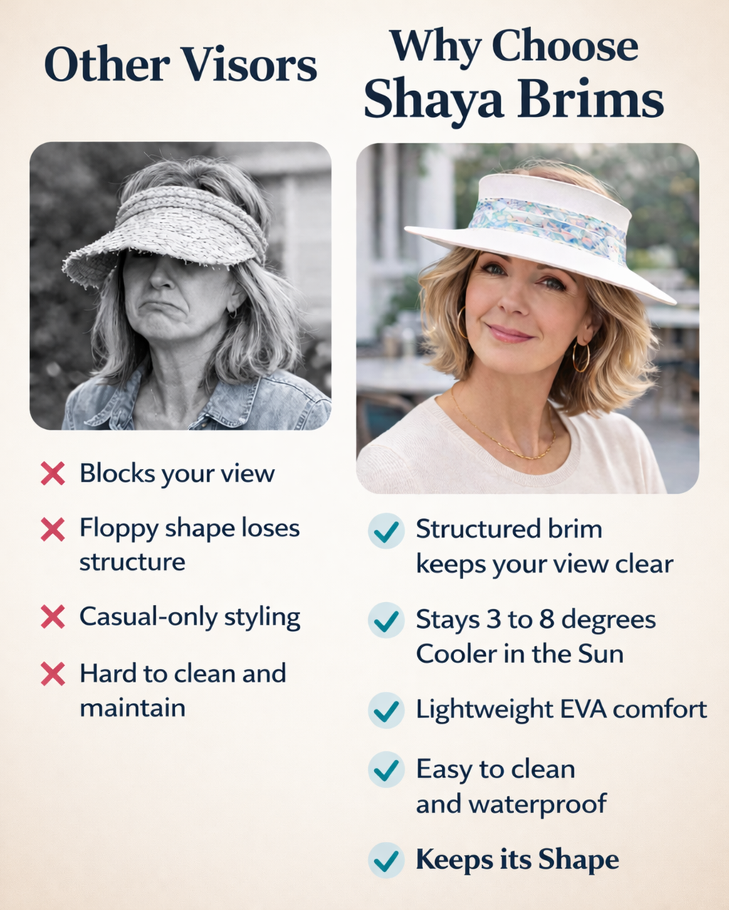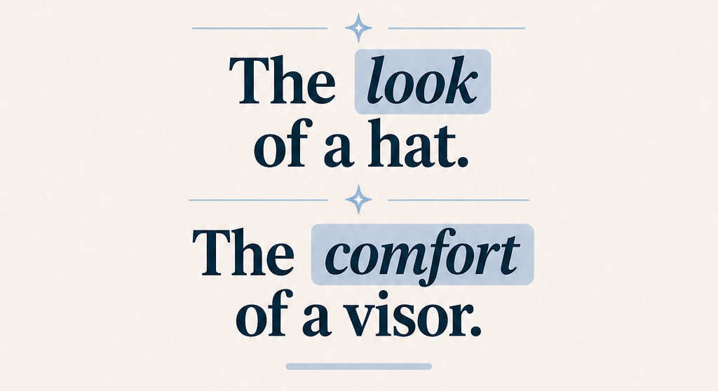For more of a "hat look" that hides the top of your hair, we suggest the Tall 3 inch height. Otherwise, the lower 2.5 inch visor is very popular.