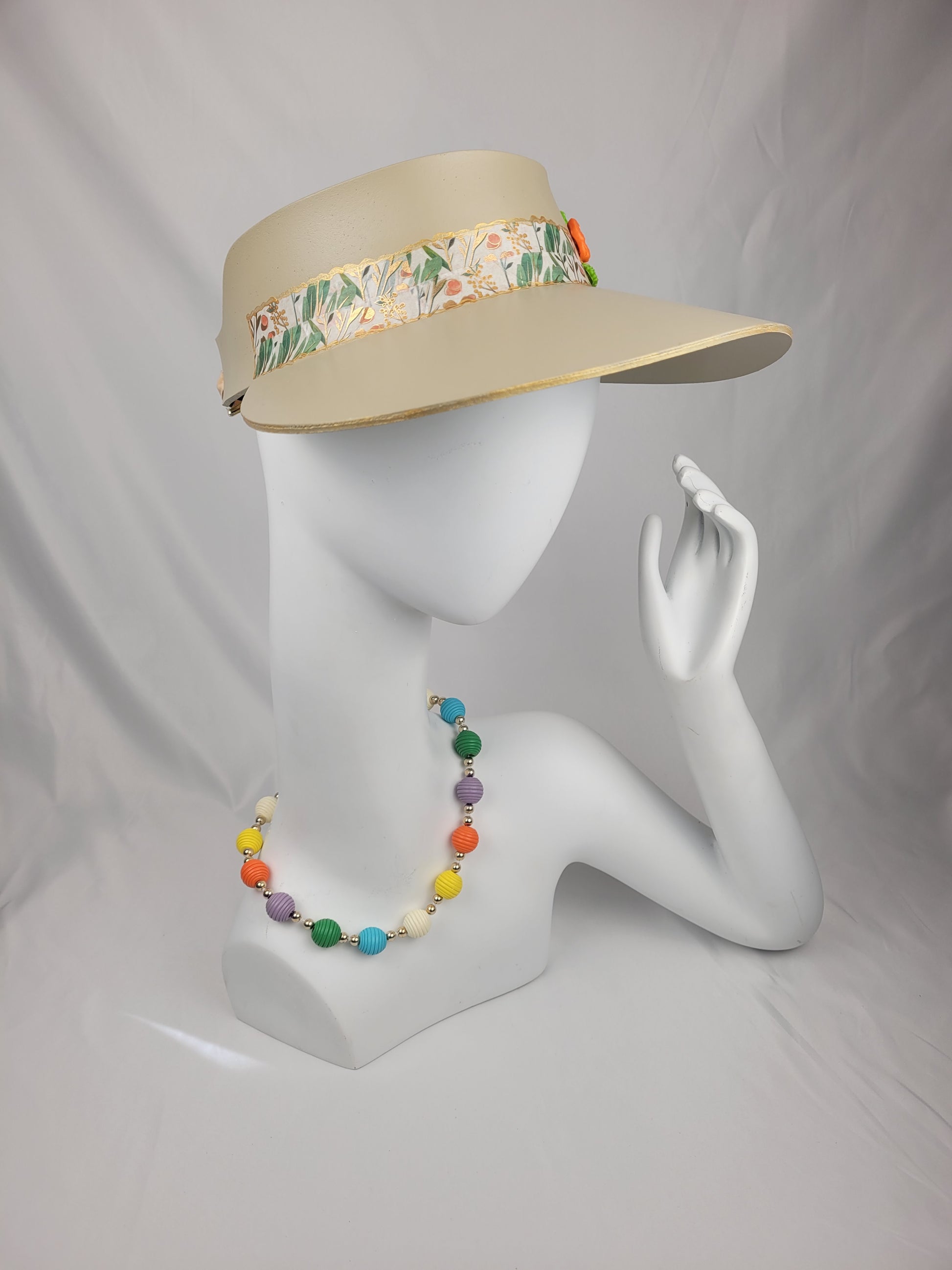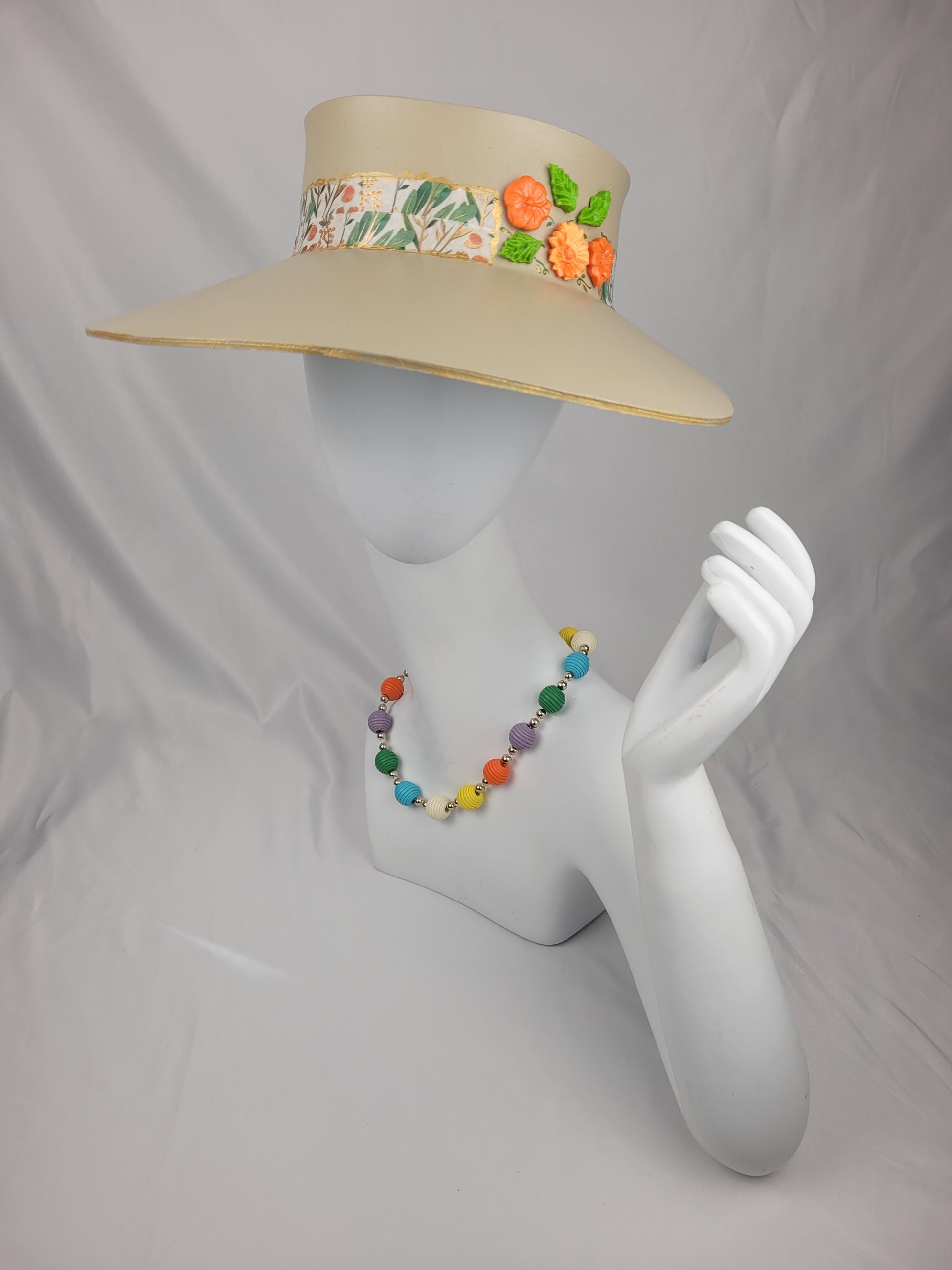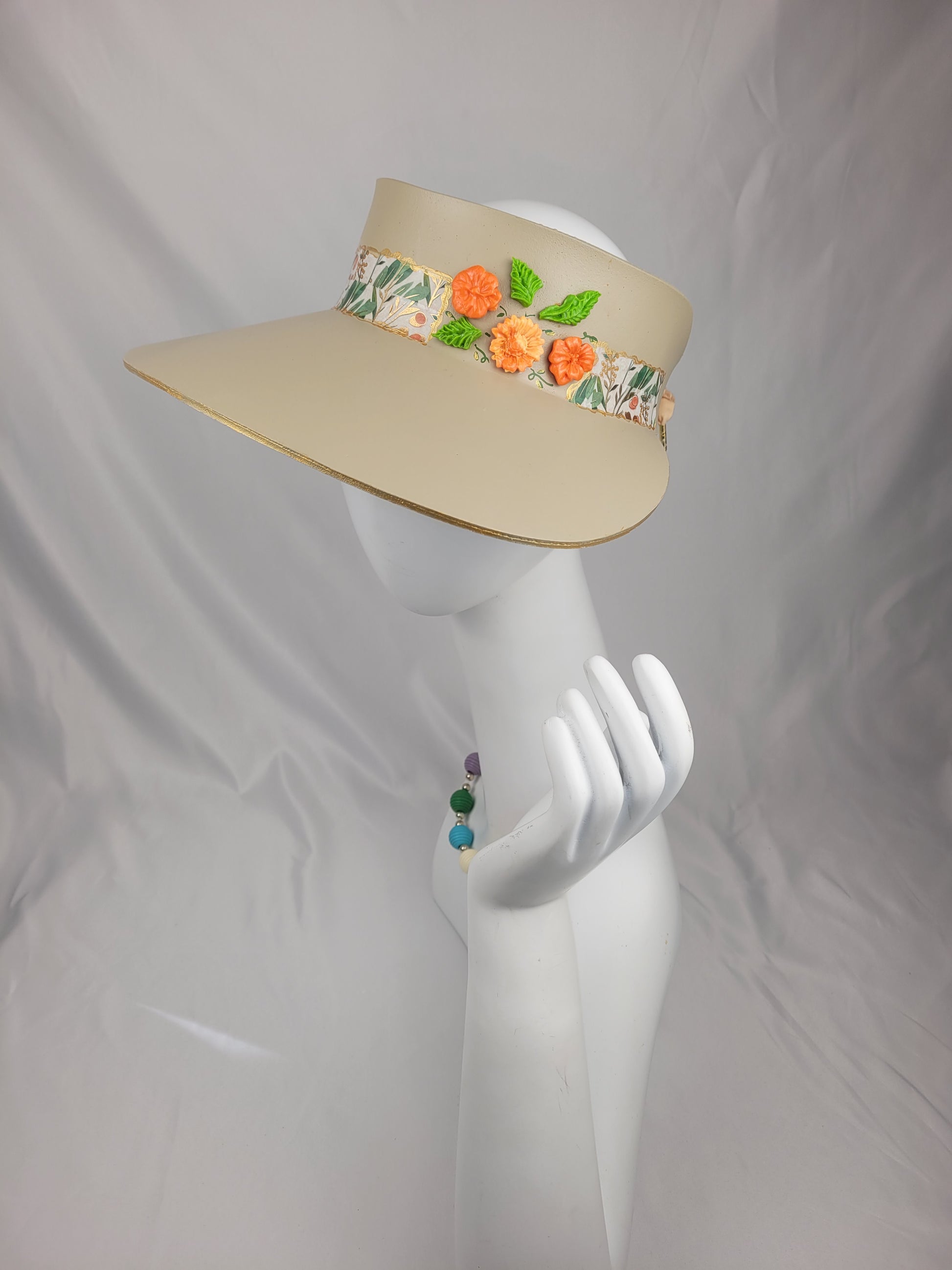 Beige "LadyEVA" Visor Hat with Orange Blossoms