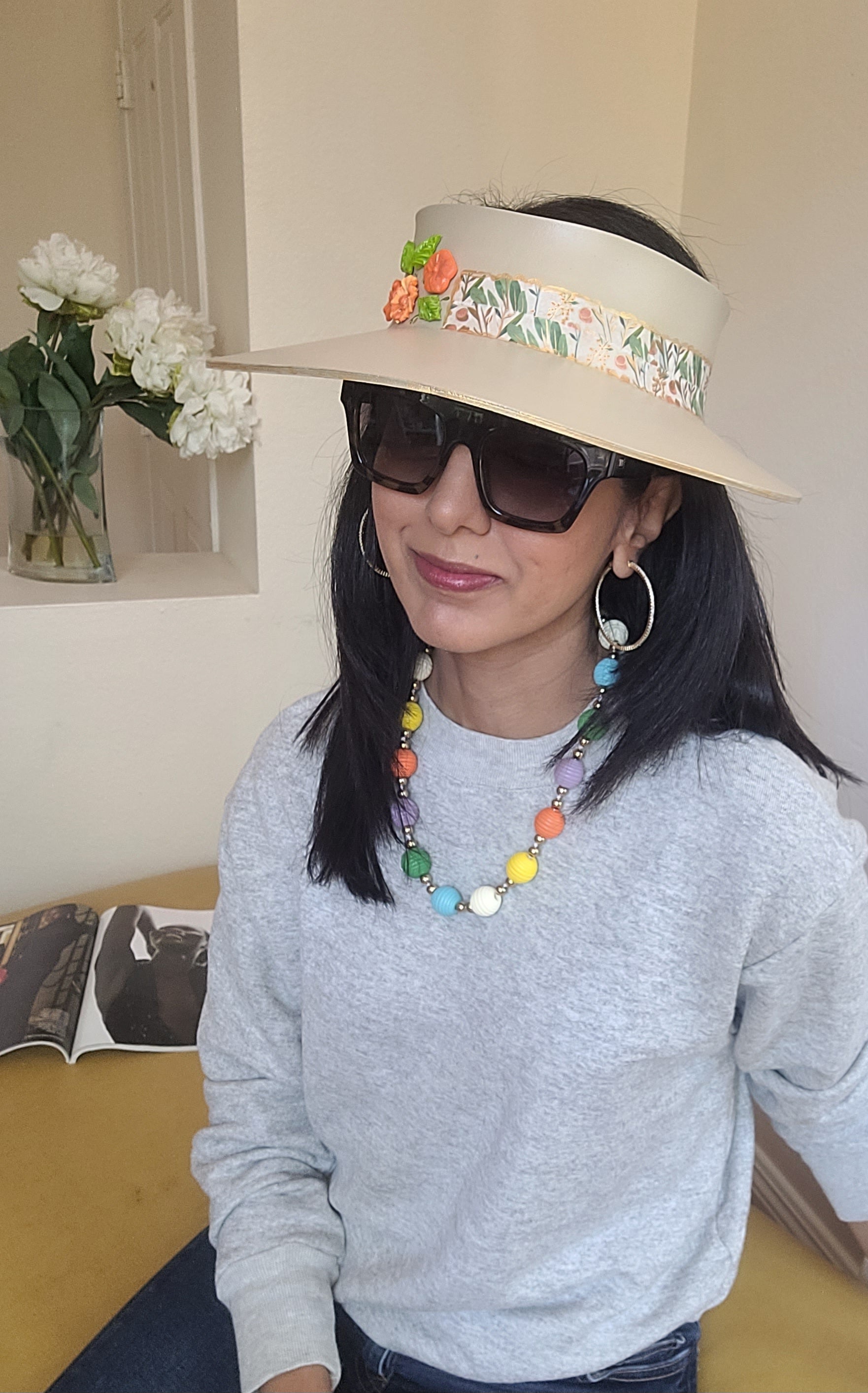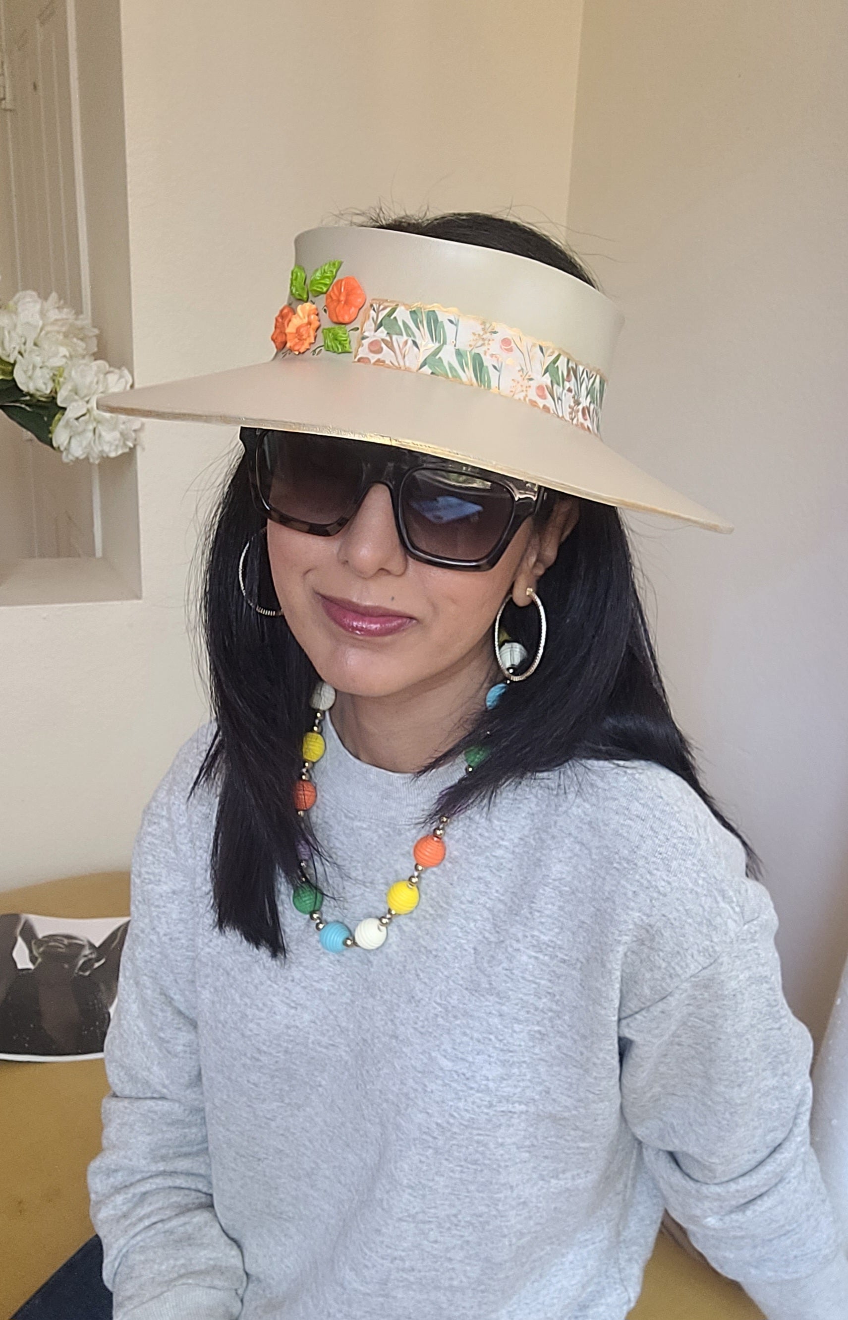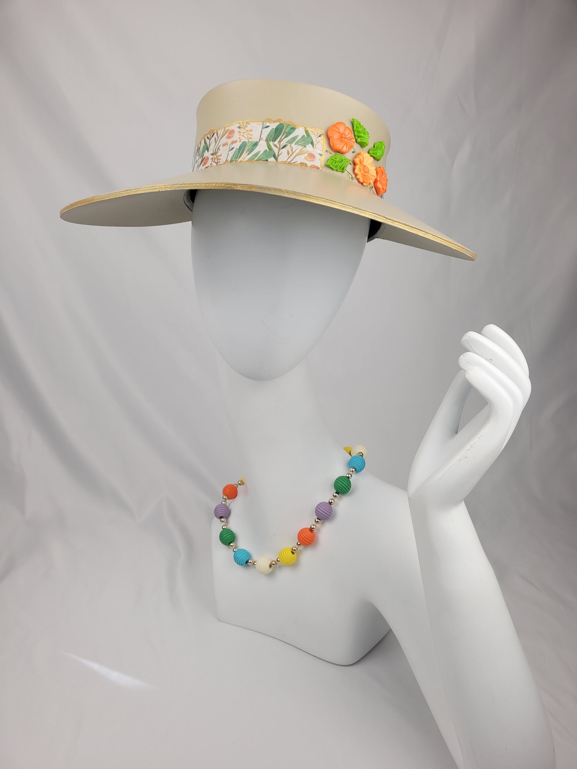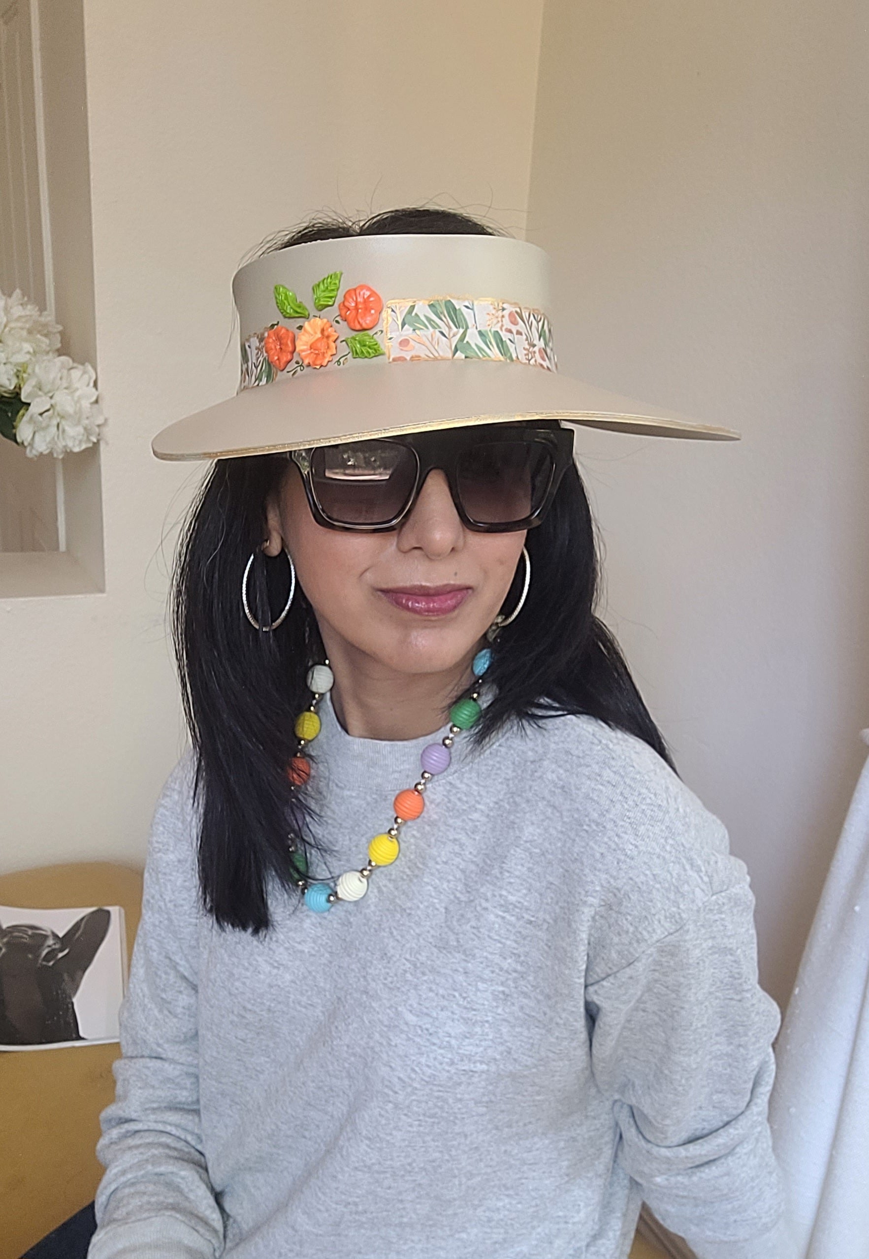 Beige "LadyEVA" Visor Hat with Orange Blossoms