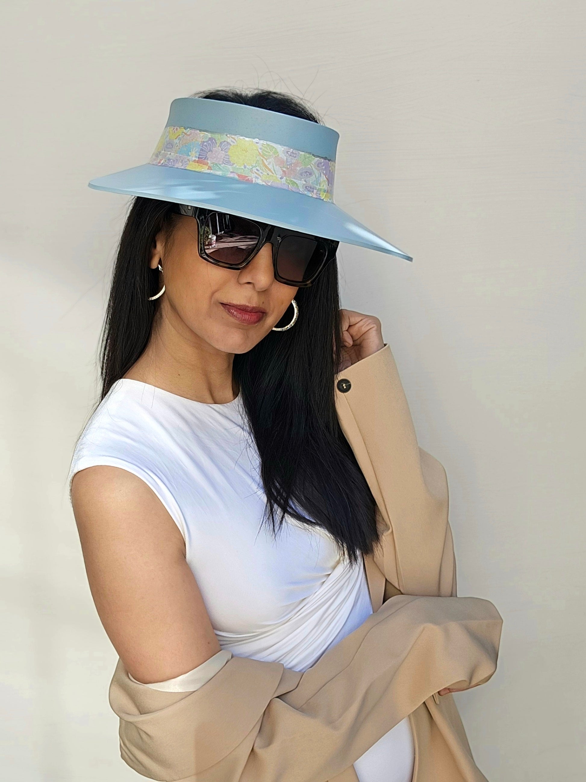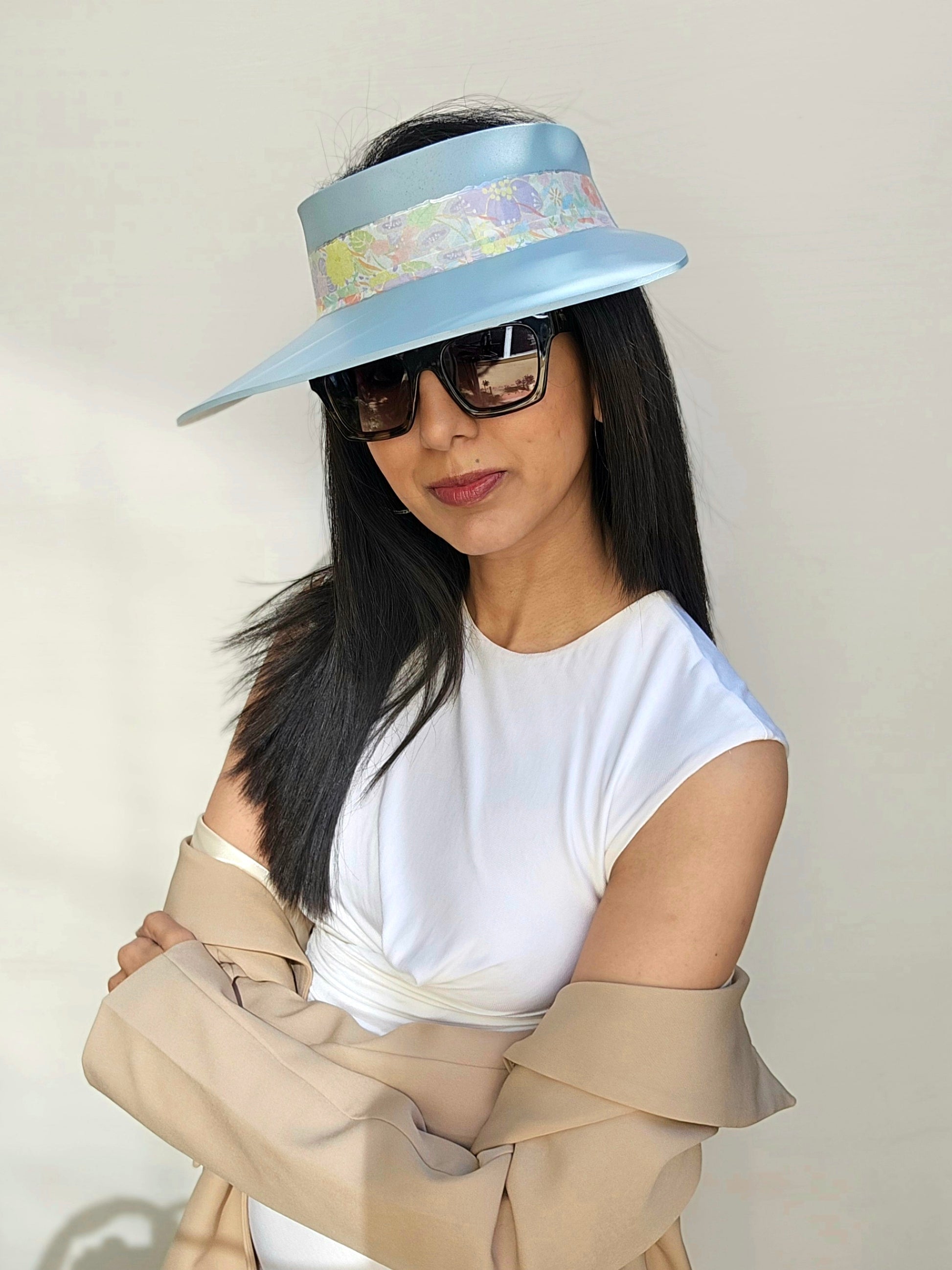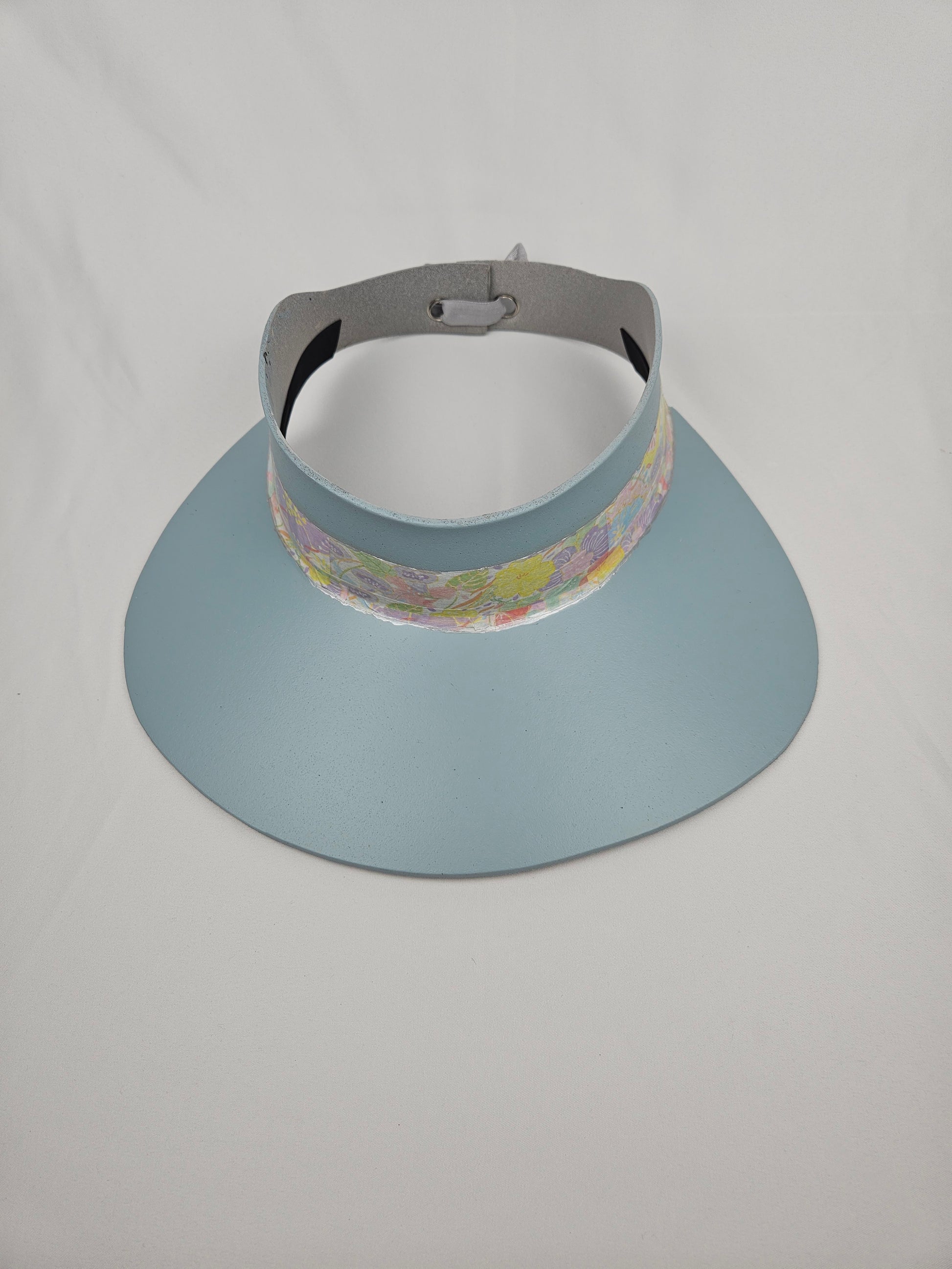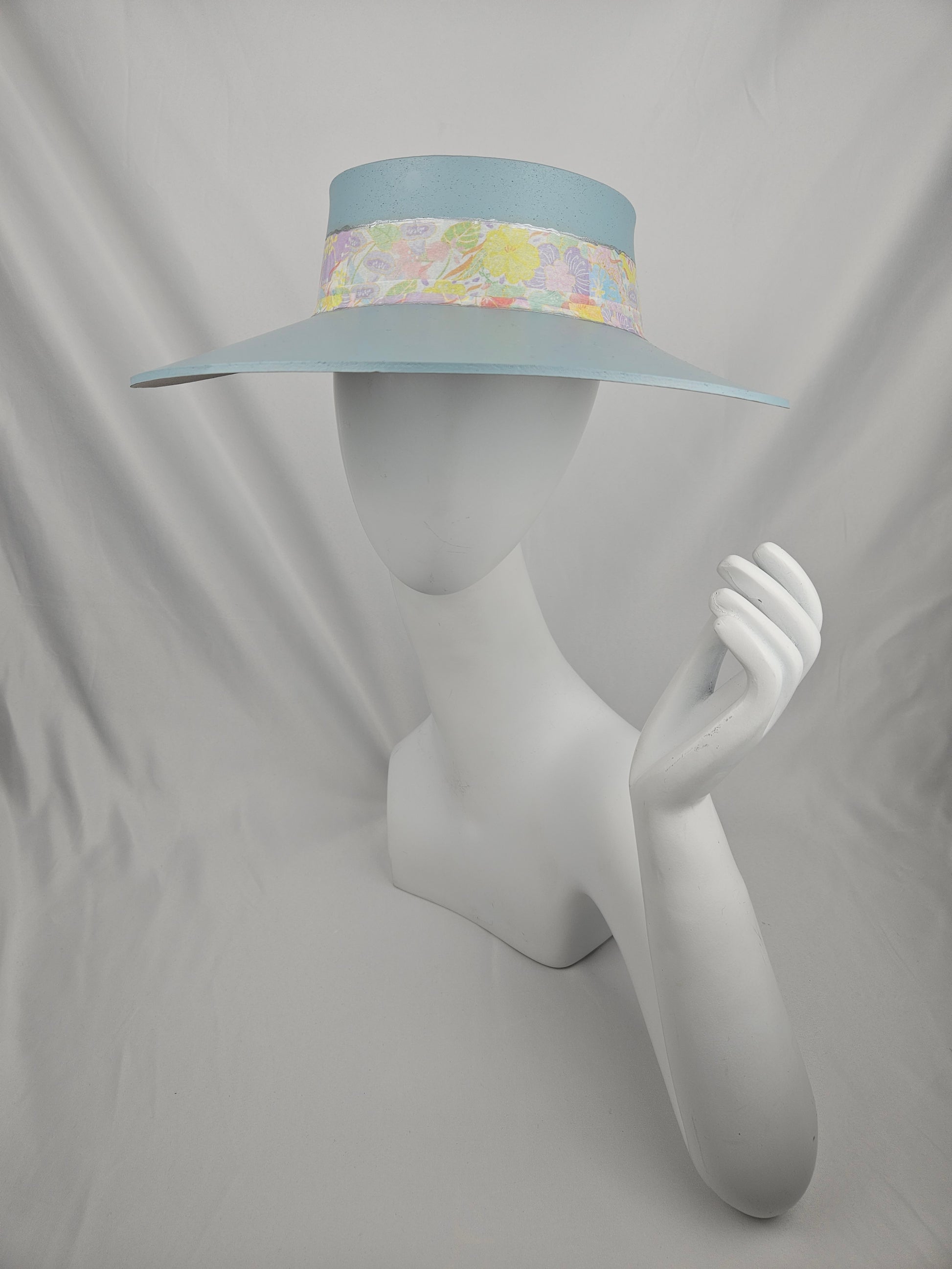 Tall Light Blue "LadyEVA" Visor Hat with Bright Pastel Floral Band