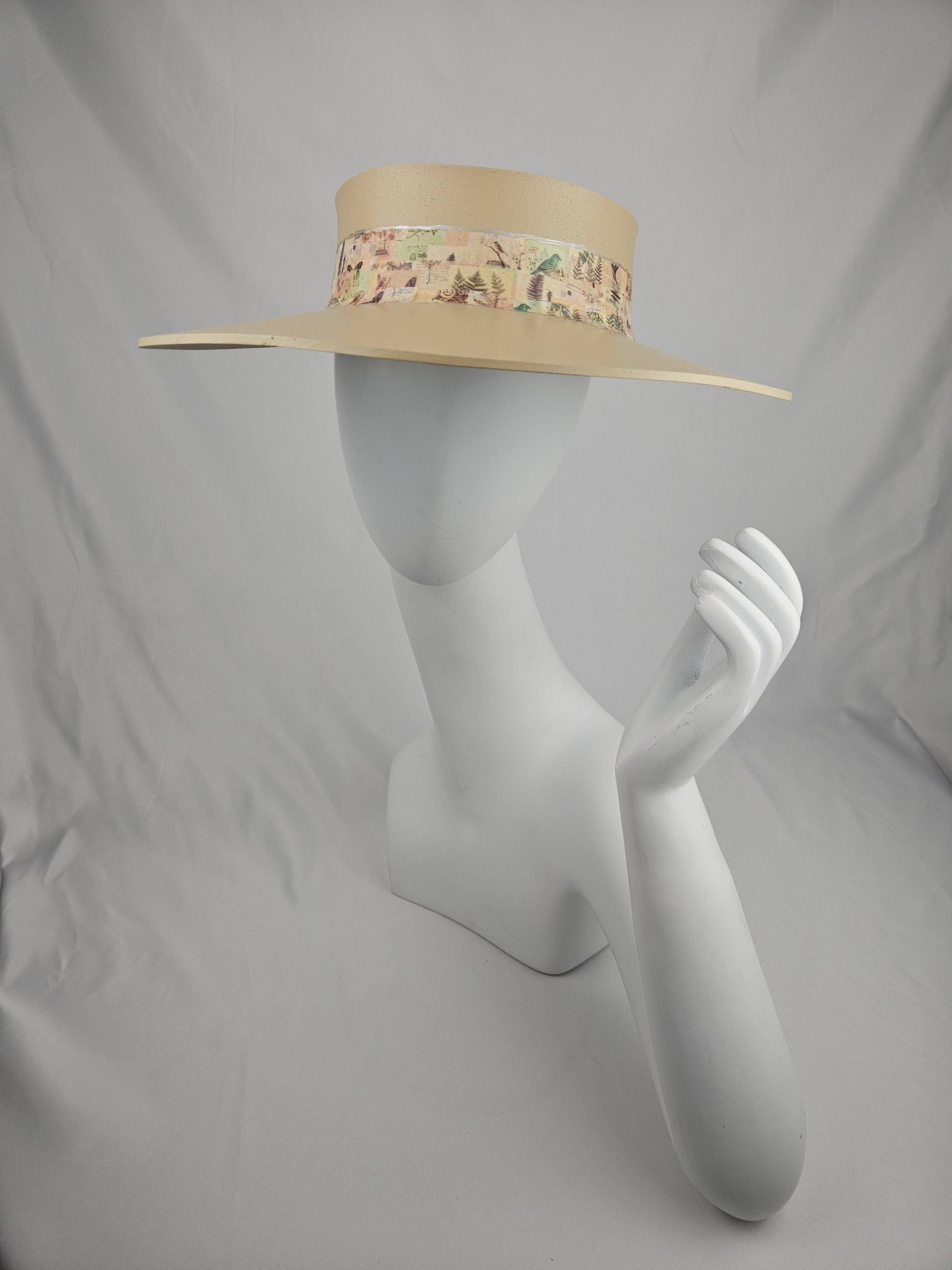 Beige "LadyEVA" Visor Hat with Botanical Collage Band
