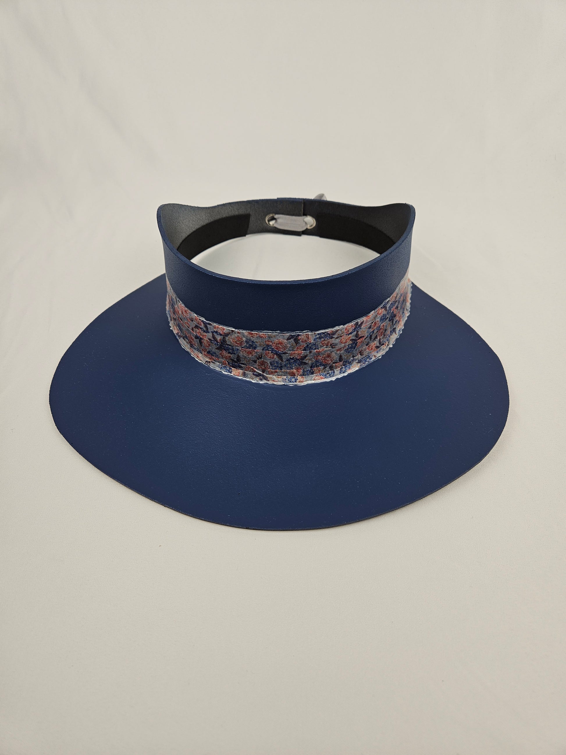 Tall Navy Blue "LadyEVA" Visor Hat with Floral Band